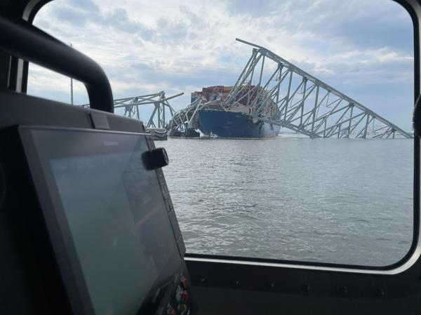 30 March 2024 Among Giants Coast Guard vessel in front of portion of Francis Scott Key Bridge Collapse