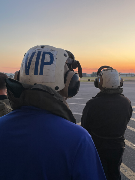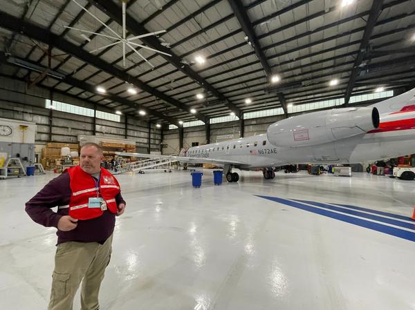 23 March 2024 Showtime Man preparing for plane crash training exercise inside airport hangar, Hagerstown, Maryland